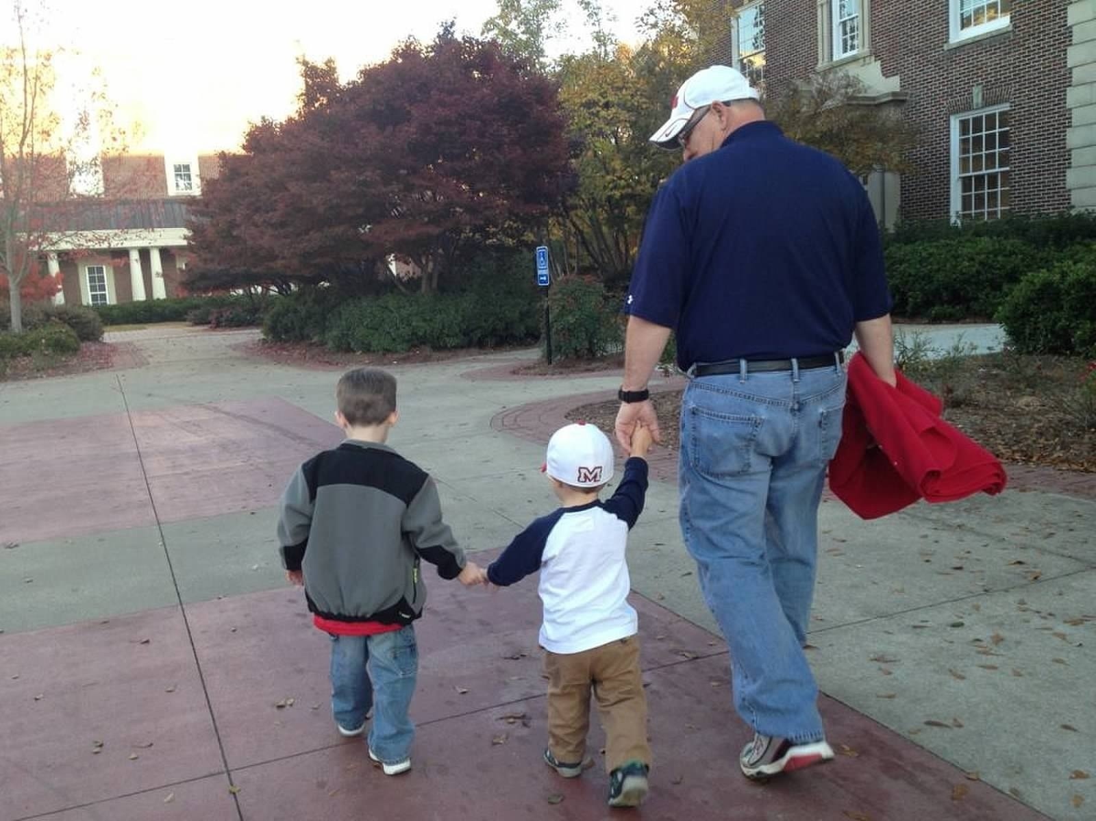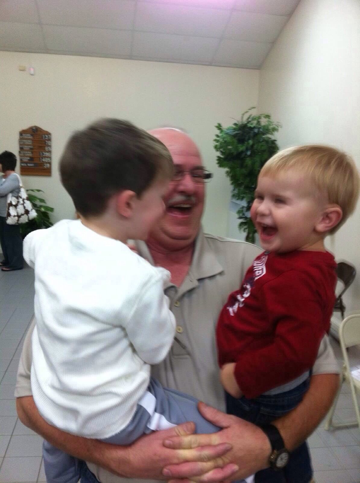 Back to the grandsons. I have never seen a grown man act so crazy just to get a smile out of his boys. He’d try just about anything to get them tickled. He’d tell them, “whatever you do, don’t you pull my mustache!” Sawyer and Hudson would just about knock one another down to get to him. As soon as they’d pull it he’d scream, “yeeeoooww!” and those boys (Daddy included) would just about pass out from laughter. Mama and Daddy would get them on Friday nights and Mama would send me pictures of them parked in front of the window waiting for G to get home from work. When they would see his truck turn in, they’d squeal and hide in the tent for him to find them. I know they miss him, but he left them a pretty good legacy to be proud of. They recently named the street by the football field after Daddy, Gary Boyd Pass. Hudson calls it G Pass. And I know as they grow up and hear more stories about G, they will appreciate that sign even more.